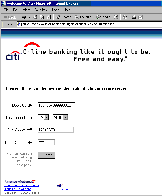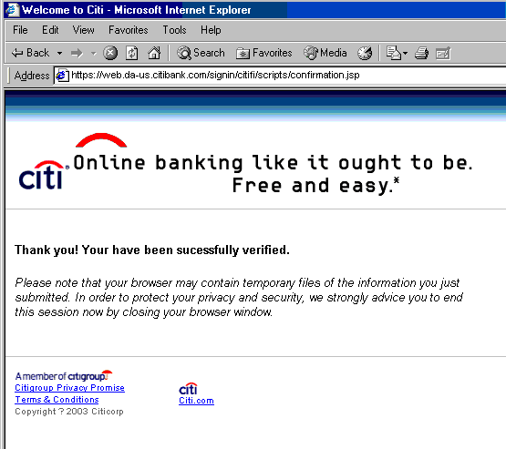 Some of these emails look almost exactly like the real thing, complete with company logos, etc. Don't fall for it! Citibank, PayPal and other financial institutions never contact their customers supplying a link for re-entering their account numbers, passwords or PIN-codes. Though the links lead to websites that look like official company websites and in some cases even the browser displays a matching URL, these sites are in fact put up by fraudsters and are usually hosted on servers in China or on hacked computers. It is suspected that Russian organized crime groups are the main operators of this type of scam.